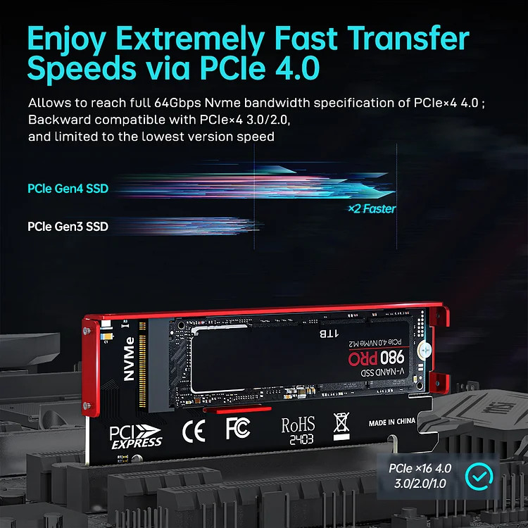 PCIe 4.0 X4 NVMe SSD Carrier with Heatsync - Red
